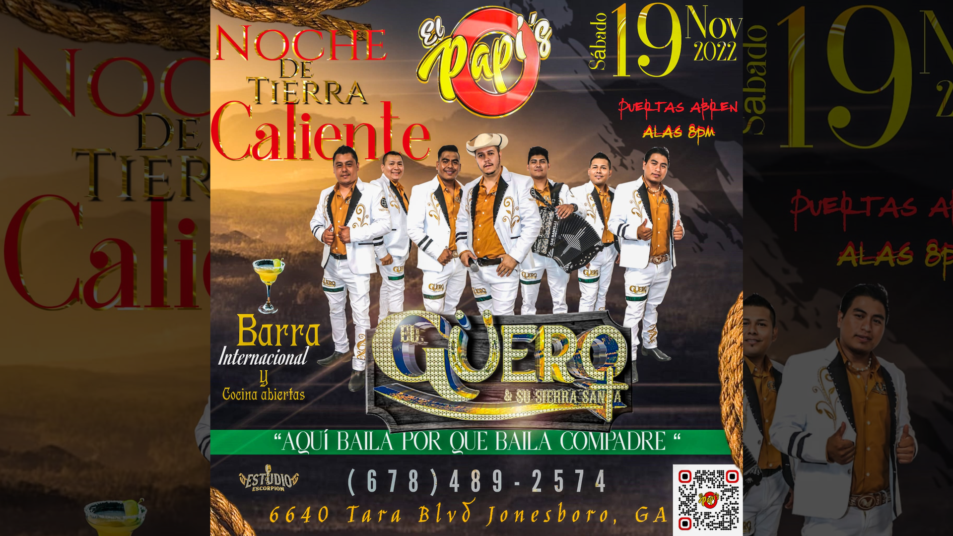 Ven y disfruta de la música y el ritmo con "El Gúero y Su Sierra Santa". Ven con tus amigos y disfruta de una noche espectacular. Barra Internacional | Cocina Abierta ¡Ponte en modo Papi’s!